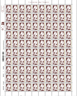 Kleinbogen mit 100 Briefmarken Marianne der Zukunft - Zusatzfrankatur 0,05€ - Bister