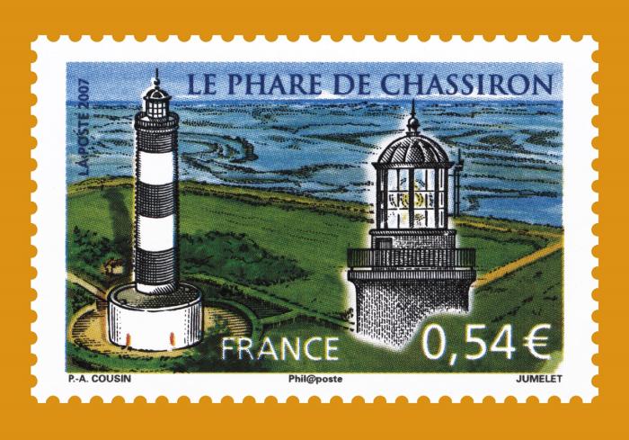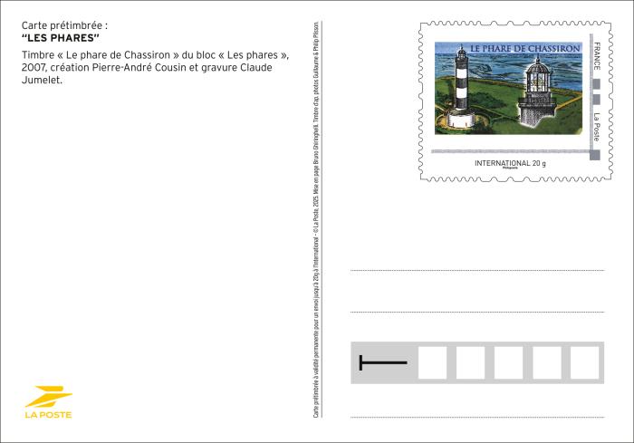 Carte-prétimbrée "Le phare de Chassiron": timbre de 2007 création Pierre-André Cousin, mise en page Bruno Ghiringhelli (c) La Poste 2025 d'ap. photo Guillaum & Philipp Plisson.