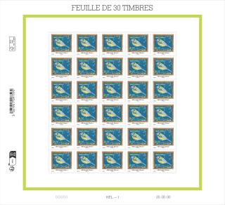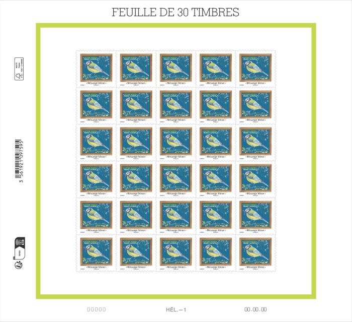 Pliego indivisible de 30 sellos "Mésange bleue", sello emitido a partir del cuadernillo "MELODIE D'OISEAUX" 1125481