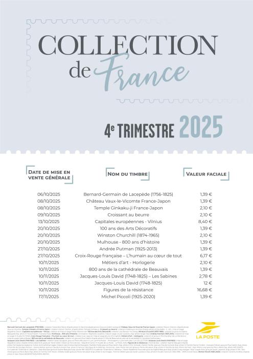 Pacote de selos e de folhas de recordações para a França 4º trimestre de 2025
