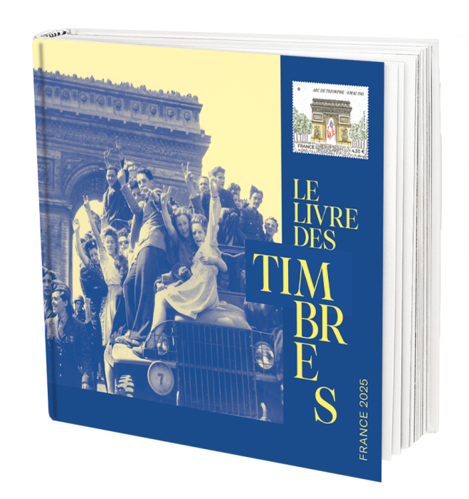 Livro de selos 2025 contendo todos os selos gomados do programa filatélico, com exceção da "Chegada do Tour de France", bem como os selos de serviço da Unesco e do Conselho da Europa, num valor facial total de 160,48 euros. É incluída uma brochura especial sobre o tema da Segunda Guerra Mundial, que aborda os seguintes assuntos: Winston Churchill, a libertação dos campos de concentração, o memorial de Chasseneuil-sur-Bonnieure, Eric Schwabe e a vitória de 8 de maio de 1945. O livro inclui um postal de oferta com uma litografia que representa a Libertação, publicada pelo Governo Provisório da República Francesa em 1945.