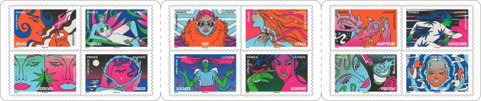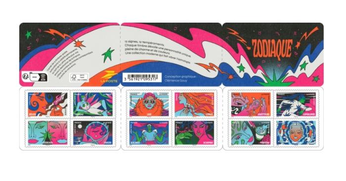 Booklet of 12 postage stamps on the 12 astrological signs