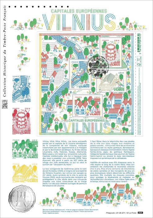 Philatelic document from the tourist series with the theme of the European Capital Vilnius.
